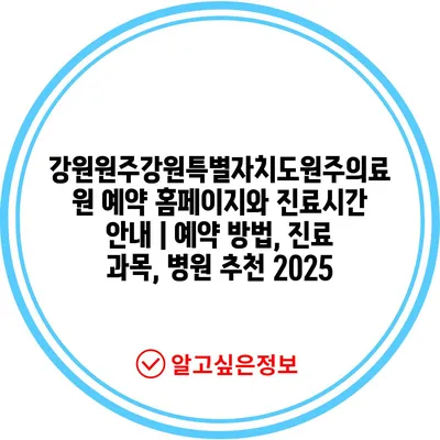 강원원주강원특별자치도원주의료원 예약 홈페이지와 진료시간 안내 | 예약 방법, 진료 과목, 병원 추천 2025