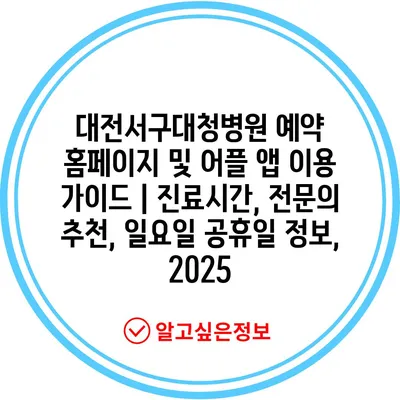 대전서구대청병원 예약 홈페이지 및 어플 앱 이용 가이드 | 진료시간, 전문의 추천, 일요일 공휴일 정보, 2025