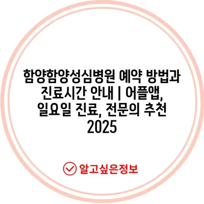 함양함양성심병원 예약 방법과 진료시간 안내 | 어플앱, 일요일 진료, 전문의 추천 2025