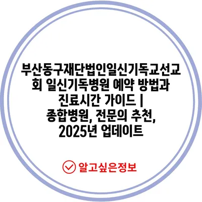 부산동구재단법인일신기독교선교회 일신기독병원 예약 방법과 진료시간 가이드 | 종합병원, 전문의 추천, 2025년 업데이트