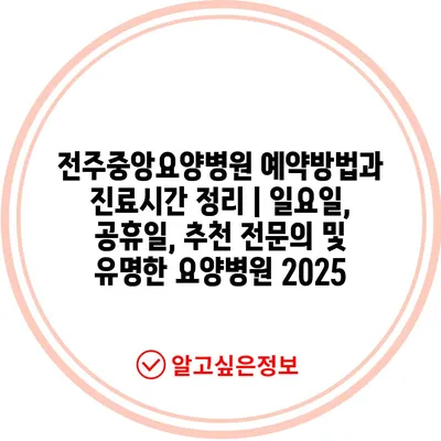 전주중앙요양병원 예약방법과 진료시간 정리 | 일요일, 공휴일, 추천 전문의 및 유명한 요양병원 2025