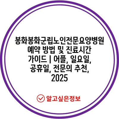 봉화봉화군립노인전문요양병원 예약 방법 및 진료시간 가이드 | 어플, 일요일, 공휴일, 전문의 추천, 2025