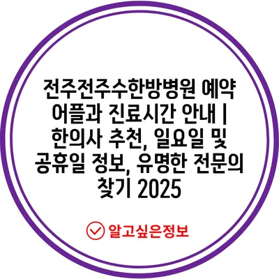 전주전주수한방병원 예약 어플과 진료시간 안내 | 한의사 추천, 일요일 및 공휴일 정보, 유명한 전문의 찾기 2025