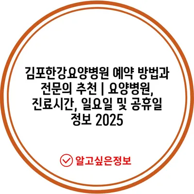 김포한강요양병원 예약 방법과 전문의 추천 | 요양병원, 진료시간, 일요일 및 공휴일 정보 2025