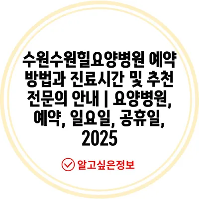 수원수원힐요양병원 예약 방법과 진료시간 및 추천 전문의 안내 | 요양병원, 예약, 일요일, 공휴일, 2025