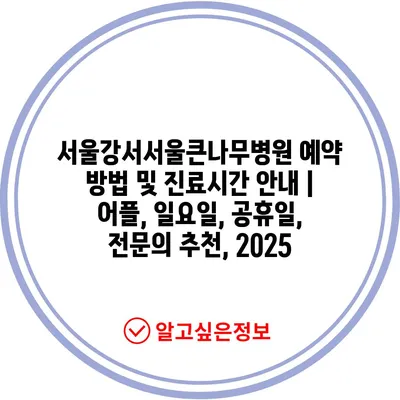 서울강서서울큰나무병원 예약 방법 및 진료시간 안내 | 어플, 일요일, 공휴일, 전문의 추천, 2025