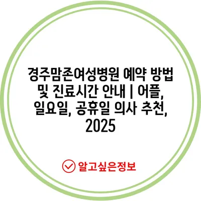 경주맘존여성병원 예약 방법 및 진료시간 안내 | 어플, 일요일, 공휴일 의사 추천, 2025