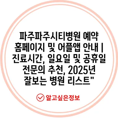 파주파주시티병원 예약 홈페이지 및 어플앱 안내 | 진료시간, 일요일 및 공휴일 전문의 추천, 2025년 잘보는 병원 리스트”
