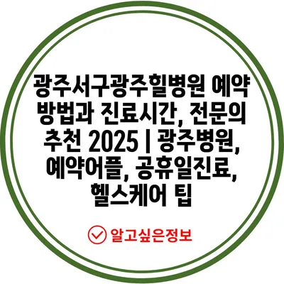 광주서구광주힐병원 예약 방법과 진료시간, 전문의 추천 2025 | 광주병원, 예약어플, 공휴일진료, 헬스케어 팁