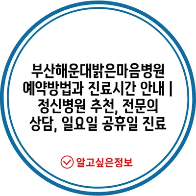 부산해운대밝은마음병원 예약방법과 진료시간 안내 | 정신병원 추천, 전문의 상담, 일요일 공휴일 진료