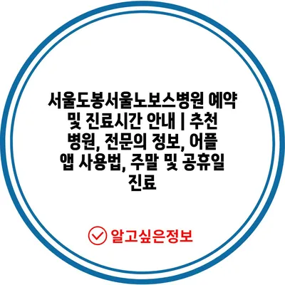 서울도봉서울노보스병원 예약 및 진료시간 안내 | 추천 병원, 전문의 정보, 어플 앱 사용법, 주말 및 공휴일 진료