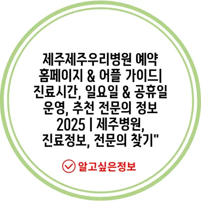 제주제주우리병원 예약 홈페이지 & 어플 가이드| 진료시간, 일요일 & 공휴일 운영, 추천 전문의 정보 2025 | 제주병원, 진료정보, 전문의 찾기”
