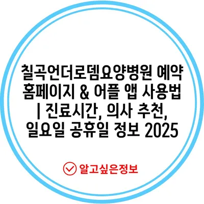 칠곡언더로뎀요양병원 예약 홈페이지 & 어플 앱 사용법 | 진료시간, 의사 추천, 일요일 공휴일 정보 2025