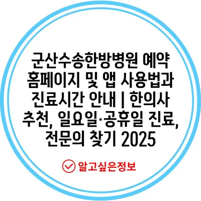 군산수송한방병원 예약 홈페이지 및 앱 사용법과 진료시간 안내 | 한의사 추천, 일요일·공휴일 진료, 전문의 찾기 2025