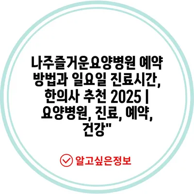 나주즐거운요양병원 예약 방법과 일요일 진료시간, 한의사 추천 2025 | 요양병원, 진료, 예약, 건강”
