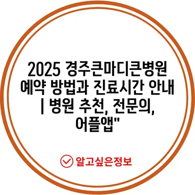 2025 경주큰마디큰병원 예약 방법과 진료시간 안내 | 병원 추천, 전문의, 어플앱”