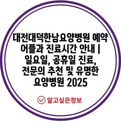 대전대덕한남요양병원 예약 어플과 진료시간 안내 | 일요일, 공휴일 진료, 전문의 추천 및 유명한 요양병원 2025