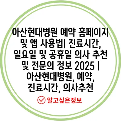 아산현대병원 예약 홈페이지 및 앱 사용법| 진료시간, 일요일 및 공휴일 의사 추천 및 전문의 정보 2025 | 아산현대병원, 예약, 진료시간, 의사추천