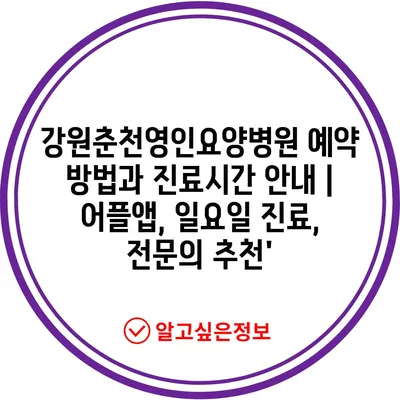 강원춘천영인요양병원 예약 방법과 진료시간 안내 | 어플앱, 일요일 진료, 전문의 추천’