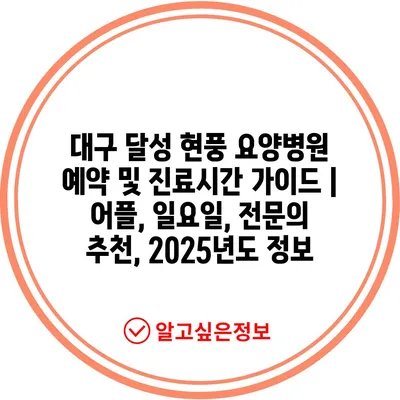 대구 달성 현풍 요양병원 예약 및 진료시간 가이드 | 어플, 일요일, 전문의 추천, 2025년도 정보