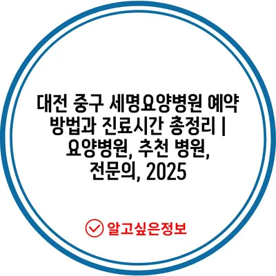 대전 중구 세명요양병원 예약 방법과 진료시간 총정리 | 요양병원, 추천 병원, 전문의, 2025