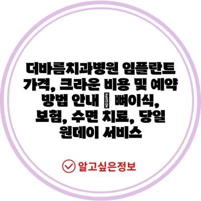 더바름치과병원 임플란트 가격, 크라운 비용 및 예약 방법 안내 | 뼈이식, 보험, 수면 치료, 당일 원데이 서비스