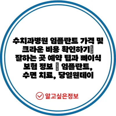 수치과병원 임플란트 가격 및 크라운 비용 확인하기| 잘하는 곳 예약 팁과 뼈이식 보험 정보 | 임플란트, 수면 치료, 당일원데이