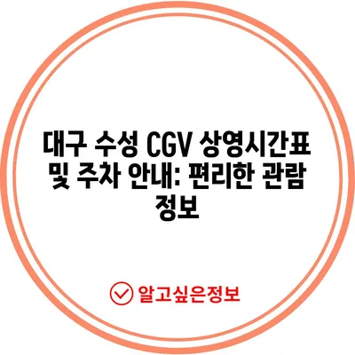 대구 수성 CGV 상영시간표 및 주차 안내: 편리한 관람 정보