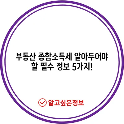부동산 종합소득세 알아두어야 할 필수 정보 5가지!