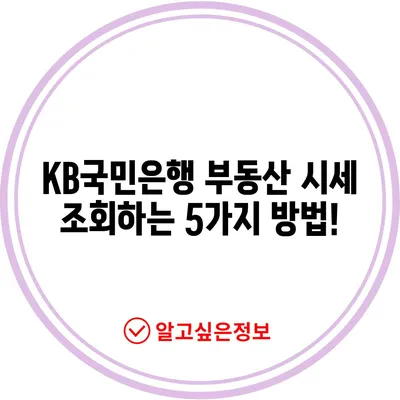 KB국민은행 부동산 시세 조회하는 5가지 방법!