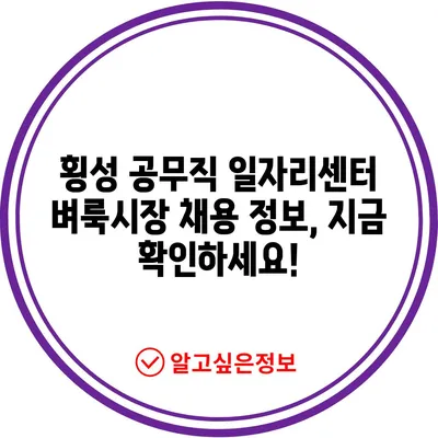횡성 공무직 일자리센터 벼룩시장 채용 정보, 지금 확인하세요!
