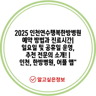 2025 인천연수행복한방병원 예약 방법과 진료시간| 일요일 및 공휴일 운영, 추천 전문의 소개! | 인천, 한방병원, 어플 앱”