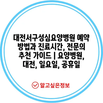 대전서구성심요양병원 예약 방법과 진료시간, 전문의 추천 가이드 | 요양병원, 대전, 일요일, 공휴일