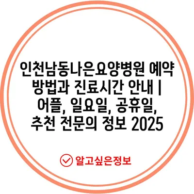인천남동나은요양병원 예약 방법과 진료시간 안내 | 어플, 일요일, 공휴일, 추천 전문의 정보 2025
