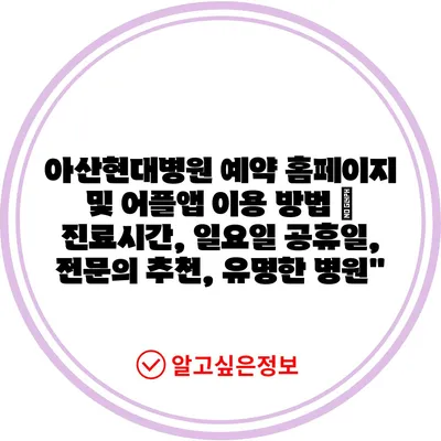 아산현대병원 예약 홈페이지 및 어플앱 이용 방법 | 진료시간, 일요일 공휴일, 전문의 추천, 유명한 병원”