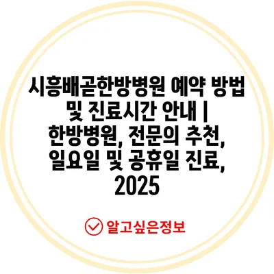 시흥배곧한방병원 예약 방법 및 진료시간 안내 | 한방병원, 전문의 추천, 일요일 및 공휴일 진료, 2025