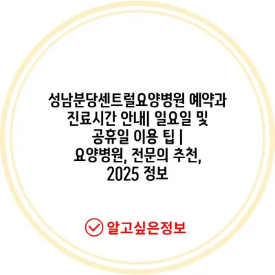 성남분당센트럴요양병원 예약과 진료시간 안내| 일요일 및 공휴일 이용 팁 | 요양병원, 전문의 추천, 2025 정보