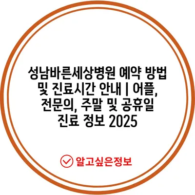 성남바른세상병원 예약 방법 및 진료시간 안내 | 어플, 전문의, 주말 및 공휴일 진료 정보 2025
