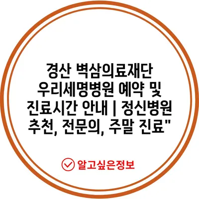 경산 벽삼의료재단 우리세명병원 예약 및 진료시간 안내 | 정신병원 추천, 전문의, 주말 진료”
