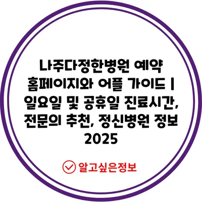 나주다정한병원 예약 홈페이지와 어플 가이드 | 일요일 및 공휴일 진료시간, 전문의 추천, 정신병원 정보 2025