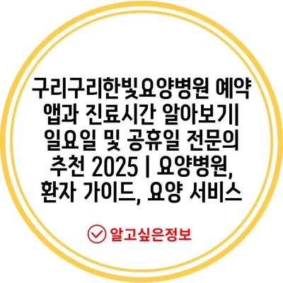 구리구리한빛요양병원 예약 앱과 진료시간 알아보기| 일요일 및 공휴일 전문의 추천 2025 | 요양병원, 환자 가이드, 요양 서비스