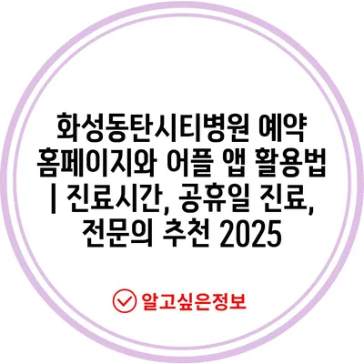 화성동탄시티병원 예약 홈페이지와 어플 앱 활용법 | 진료시간, 공휴일 진료, 전문의 추천 2025