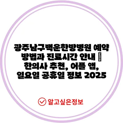 광주남구백운한방병원 예약 방법과 진료시간 안내 | 한의사 추천, 어플 앱, 일요일 공휴일 정보 2025