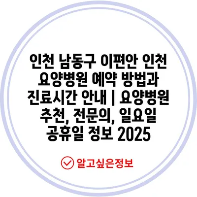 인천 남동구 이편안 인천 요양병원 예약 방법과 진료시간 안내 | 요양병원 추천, 전문의, 일요일 공휴일 정보 2025