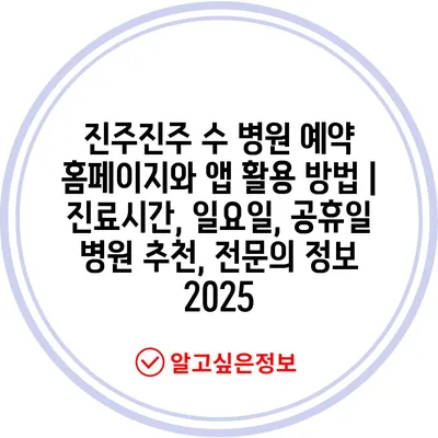 진주진주 수 병원 예약 홈페이지와 앱 활용 방법 | 진료시간, 일요일, 공휴일 병원 추천, 전문의 정보 2025