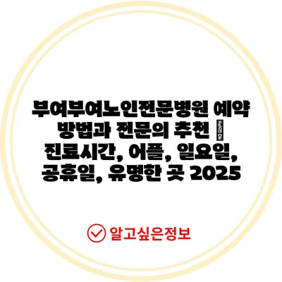 부여부여노인전문병원 예약 방법과 전문의 추천 | 진료시간, 어플, 일요일, 공휴일, 유명한 곳 2025