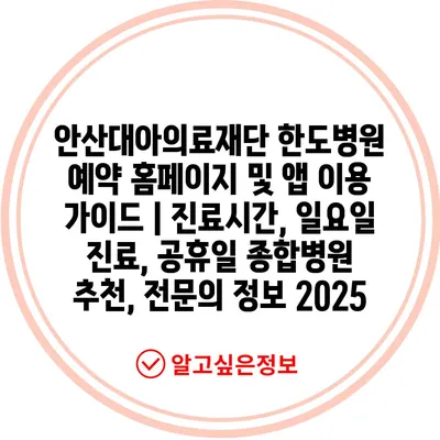 안산대아의료재단 한도병원 예약 홈페이지 및 앱 이용 가이드 | 진료시간, 일요일 진료, 공휴일 종합병원 추천, 전문의 정보 2025