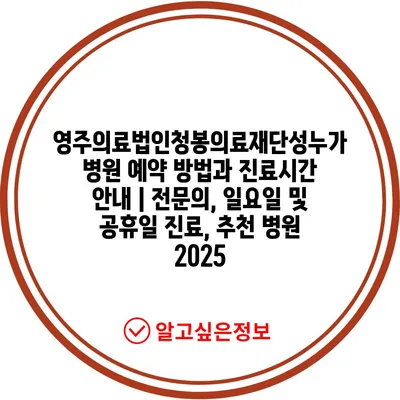 영주의료법인청봉의료재단성누가병원 예약 방법과 진료시간 안내 | 전문의, 일요일 및 공휴일 진료, 추천 병원 2025