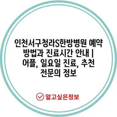 인천서구청라S한방병원 예약 방법과 진료시간 안내 | 어플, 일요일 진료, 추천 전문의 정보