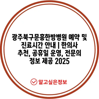광주북구문흥한방병원 예약 및 진료시간 안내 | 한의사 추천, 공휴일 운영, 전문의 정보 제공 2025